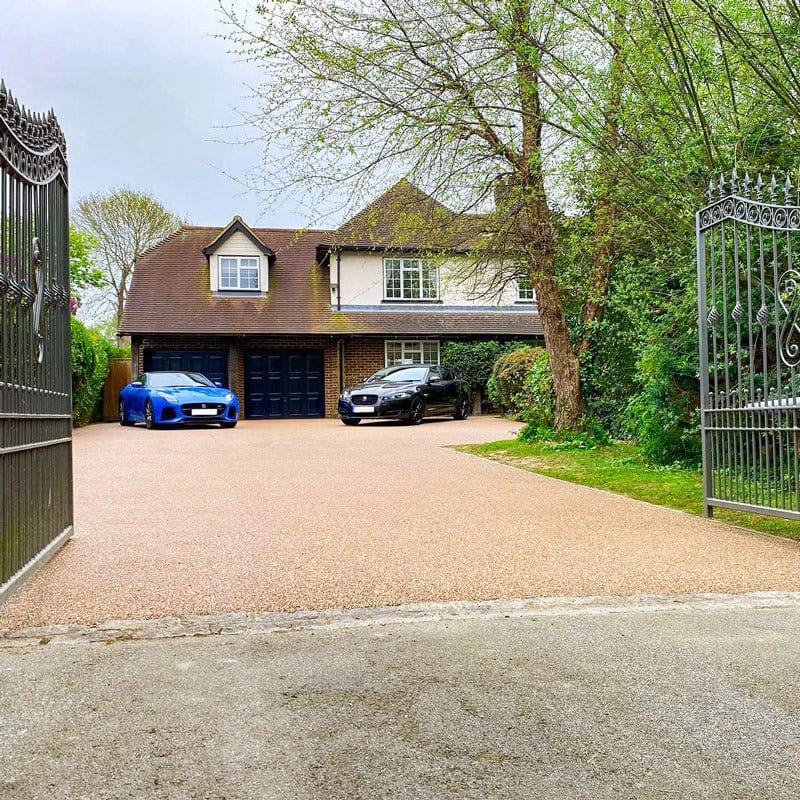 Een mix van gouden en roze tinten die perfect is voor elk project. De ronde steentjes springen in het oog en zorgen voor een gladde, luxueuze afwerking die perfect is voor opritten, terrassen en paden. De levendige kleuren geven elke buitenruimte een warme uitstraling en maken dit product tot een favoriet bij huiseigenaren die op zoek zijn naar stijl en duurzaamheid in hun tuinontwerp. Deze bundel bevat 4 zakken Resin Aggregates van 25 kg en 7 kg UVR Pro Resin deel A en deel B.