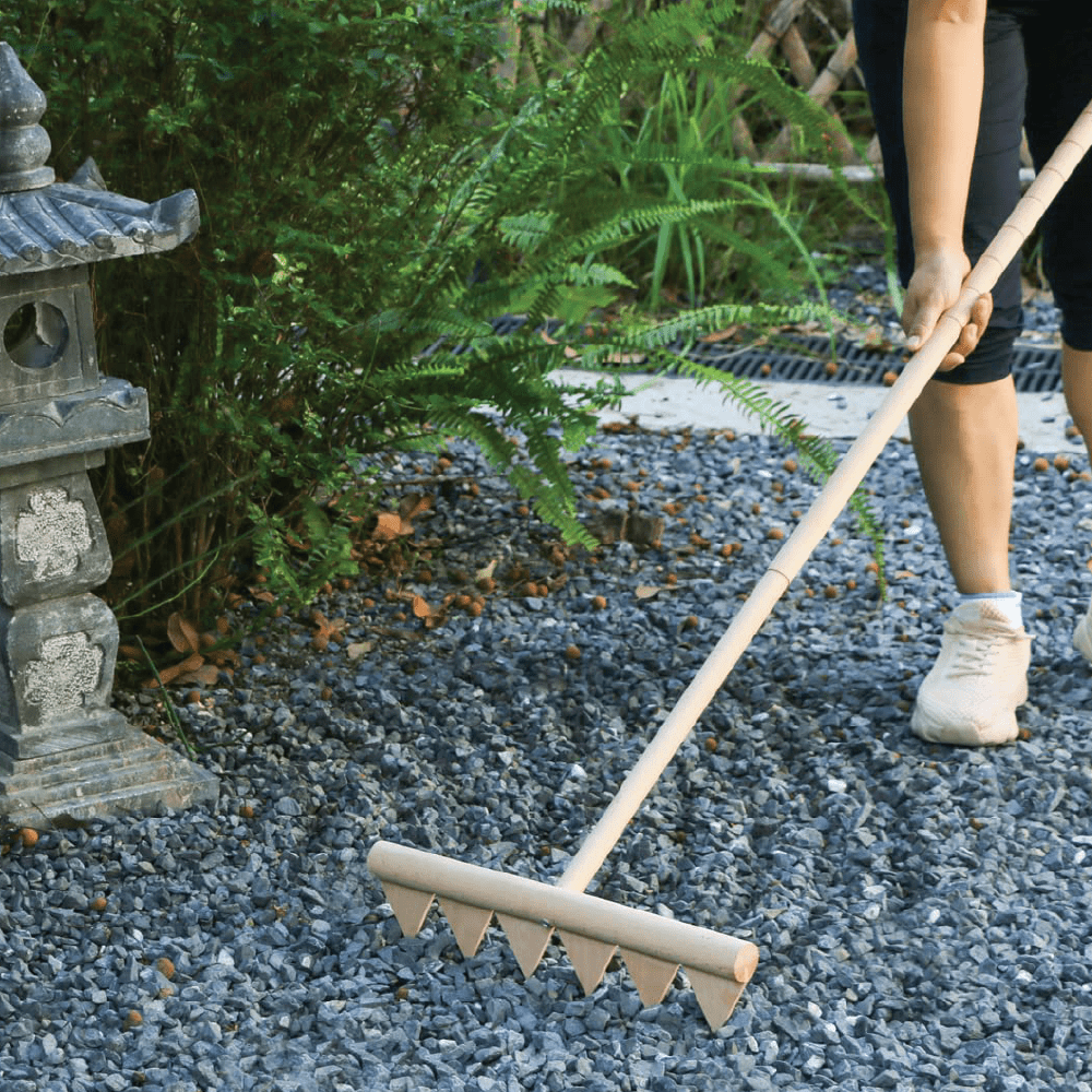 Once you’ve applied the initial coat, take a rake or hand trowel and gently turn over the stones. This helps distribute the binder more evenly, ensuring deeper penetration into the layers beneath. Raking also prevents clumping and ensures a natural, even appearance when the process is complete.