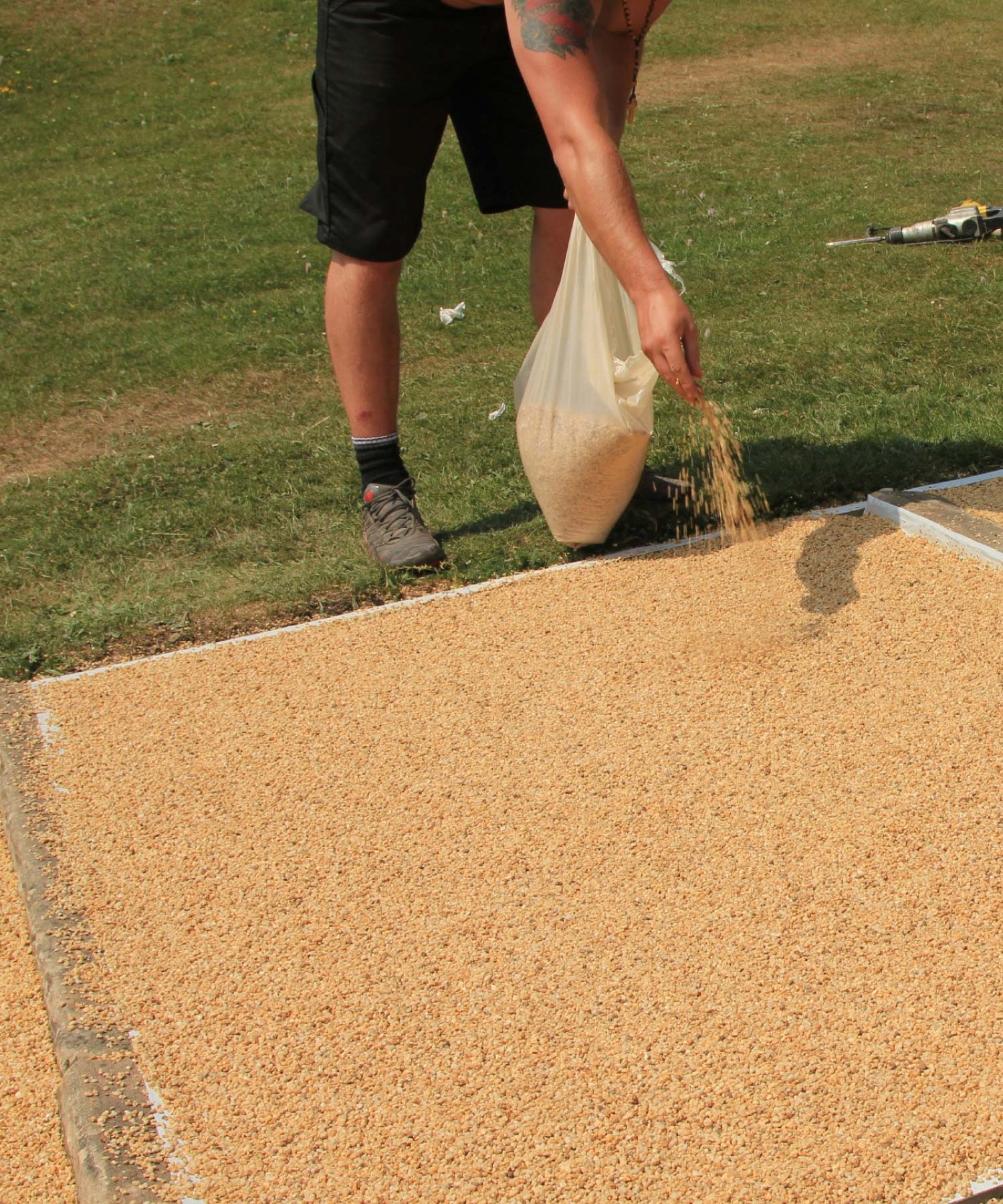 Both bound and bonded surface dressings are used for paths and pavements to ensure the surface is anti-skid and slip-resistant, it also gives it a decorative finish. Both systems use a combination of binders (resin, gravel, or other aggregates).